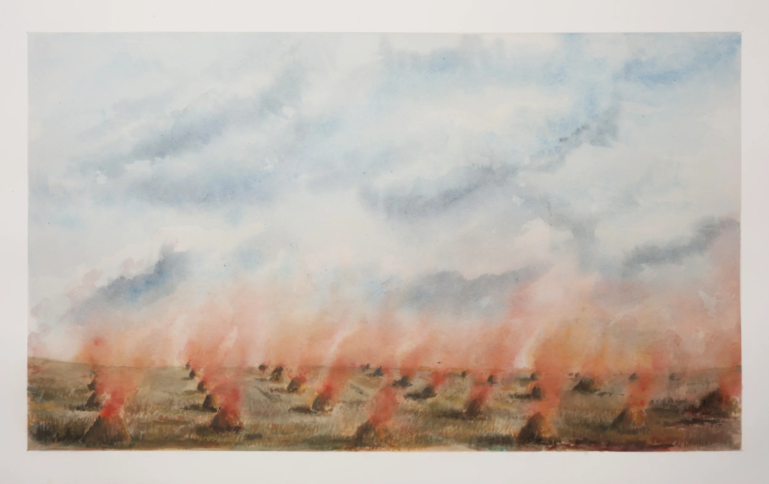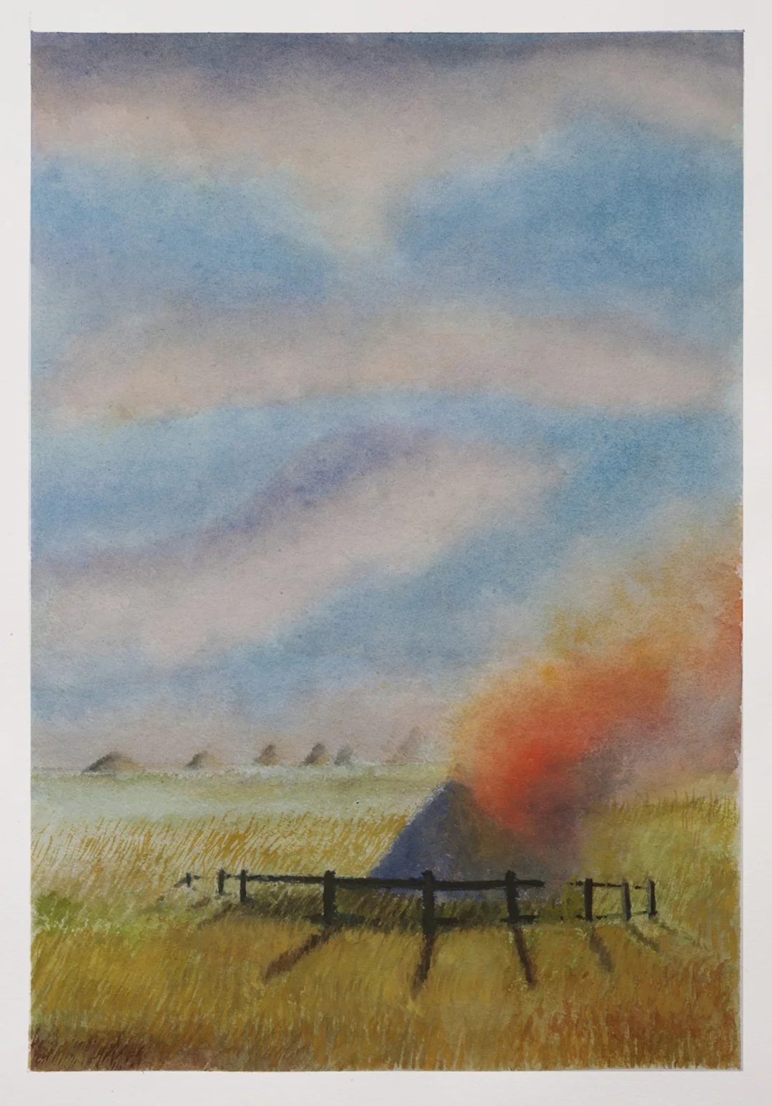 HAYSTACKS IN FIELD WITH WINDMILL 2